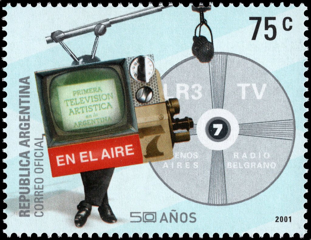 Visibility: public Image owner: none postage 12/1/2001 75c multi issue=50th Anniversary of Television in Argentina unwmk perf=13.75 Crops No visible images cropped from this one. Measurements Resolution is unknown. Source Source name: Colnect File URL: http://i.colnect.net/b/4591/997/50-Years-of-Television-in-Argentina.jpg Uploaded April 12, 2018, 4:04 am by Stan Shebs |