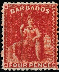Type: stamp Issuer: Barbados Date: 1875 Denom: ?
