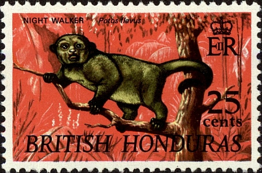 Visibility: public Image owner: none postage 10/15/1968 25c multi dt=animals (1968 British Honduras) d=kinkajou (1968) wmk=St Edwards crown & CA Crops No visible images cropped from this one. Measurements Resolution is unknown. Source Source name: Colnect File URL: http://i.colnect.net/b/4247/395/Kinkajou-Potos-flavus.jpg Uploaded April 20, 2018, 4:19 pm by Stan Shebs |