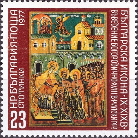 Visibility: public Image owner: none postage 5/10/1977 23s multi dt=Bulgarian icons d=Mary going to the Temple 18th Century Rila Monastery unwmk perf=13 Crops No visible images cropped from this one. Measurements Resolution is unknown. Source Source name: Colnect File URL: http://i.colnect.net/b/4204/942/Mary-going-to-the-Temple-18th-Century-Rila-Monastery.jpg Uploaded April 20, 2018, 8:30 pm by Stan Shebs |