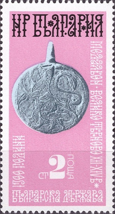 Visibility: public Image owner: none postage 12/28/1974 2s multi dt=art objects (1974) d=Golden Medallion of Veliko Tarnovo Veliko 12th Century unwmk perf=13x13.25 Crops No visible images cropped from this one. Measurements Resolution is unknown. Source Source name: Colnect File URL: http://i.colnect.net/b/4068/455/Golden-Medallion-of-Veliko-Tarnovo-Veliko-12th-Century.jpg Uploaded April 20, 2018, 9:43 pm by Stan Shebs |