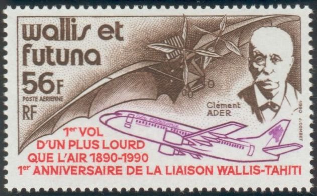 Visibility: public Image owner: none airmail 6/9/1990 56fr multi issue=100th Anniversary of First Heavier-than-Air Flight / 1st Anniversary of Wallis-Tahiti Air Link d="Avion III", Airbus Industrie A310 and C unwmk perf=13 Crops No visible images cropped from this one. Measurements Resolution is unknown. Source Source name: Colnect File URL: http://i.colnect.net/b/905/738/Clement-Ader-plane-3-and-twin-engine-flight.jpg Uploaded August 26, 2014, 5:23 pm by Stan Shebs |