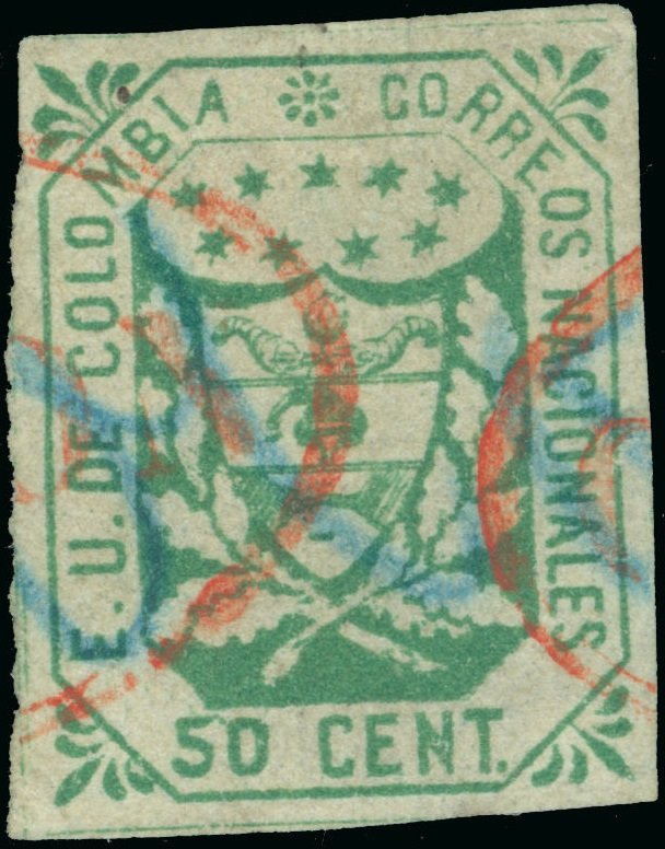 Visibility: public Image owner: none postage 50c grn d=arms of Colombia (1864) unwmk imperf Crops No visible images cropped from this one. Measurements Resolution is unknown. Source Source name: Colnect File URL: http://i.colnect.net/b/4737/186/Coat-of-Arms.jpg Uploaded April 26, 2018, 4:24 pm by Stan Shebs |