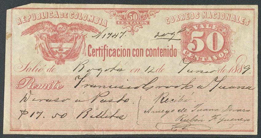 Type: stamp Issuer: Colombia Date: 1887 Denom: ?