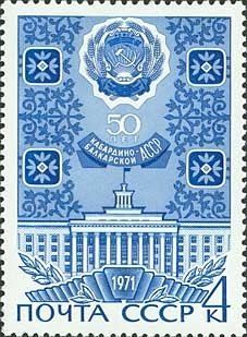 Visibility: public Image owner: none postage 8/17/1971 4k bl issue=Kabardin Balkar ASSR 50th unwmk perf=12 Crops No visible images cropped from this one. Measurements Resolution is unknown. Source Source name: Colnect File URL: http://i.colnect.net/b/918/312/Arms-and-Supreme-Soviet-building-of-Kabardino-Balkar-republi.jpg Uploaded August 26, 2014, 5:26 pm by Stan Shebs |