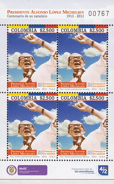 Visibility: public Image owner: none Crops No visible images cropped from this one. Measurements Resolution is unknown. Source Source name: Colnect File URL: http://i.colnect.net/b/4055/612/Alfonso-Lopez-Michelsen-1913-2007.jpg Uploaded April 27, 2018, 8:29 pm by Stan Shebs |