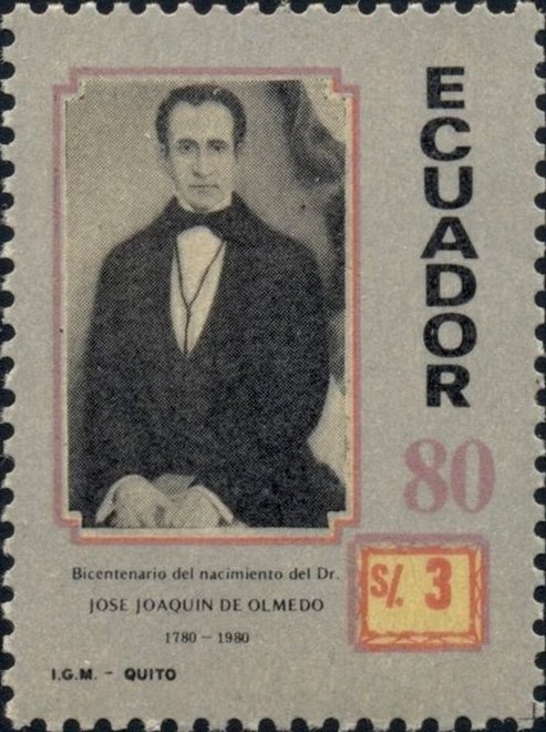 Visibility: public Image owner: none postage 4/24/1980 3s multi issue=200th Anniversary of the Birth of Jose Joaquin de Olmedo d=Jose Joaquin de Olmedo (1980) unwmk Crops No visible images cropped from this one. Measurements Resolution is unknown. Source Source name: Colnect File URL: http://i.colnect.net/b/4560/893/José-Joaquín-de-Olmedo-1780-1847-poet-and-patriot.jpg Uploaded May 9, 2018, 6:01 pm by Stan Shebs |