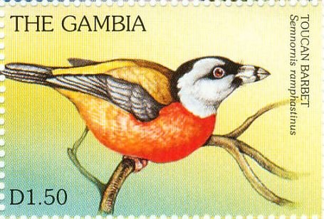 Visibility: public Image owner: none postage 2/24/1997 1.50d multi issue=Endangered Species 1997 dt=endangered species (1997 Gambia) d=Semnornis ramphastinus (1997) unwmk perf=14 Crops No visible images cropped from this one. Measurements Resolution is unknown. Source Source name: Colnect File URL: http://i.colnect.net/b/4711/621/Toucan-barbet.jpg Uploaded May 31, 2018, 3:11 pm by Stan Shebs |
