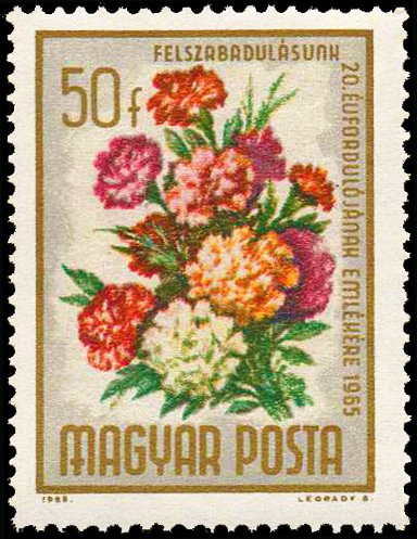 Visibility: public Image owner: none postage 4/4/1965 50f multi dt=flowers (1965 Hungary) d=carnations unwmk perf=11.5x12 Crops No visible images cropped from this one. Measurements Resolution is unknown. Source Source name: Colnect File URL: http://i.colnect.net/images/b/879/297/Carnation-Dianthus-caryophyllus.jpg Uploaded August 26, 2014, 5:44 pm by Stan Shebs |