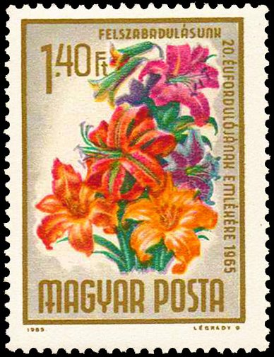 Visibility: public Image owner: none postage 4/4/1965 1.40fo multi dt=flowers (1965 Hungary) d=lilies (1965) unwmk perf=11.5x12 Crops No visible images cropped from this one. Measurements Resolution is unknown. Source Source name: Colnect File URL: http://i.colnect.net/images/b/879/299/Lilies-Lilium-sp.jpg Uploaded August 26, 2014, 5:44 pm by Stan Shebs |