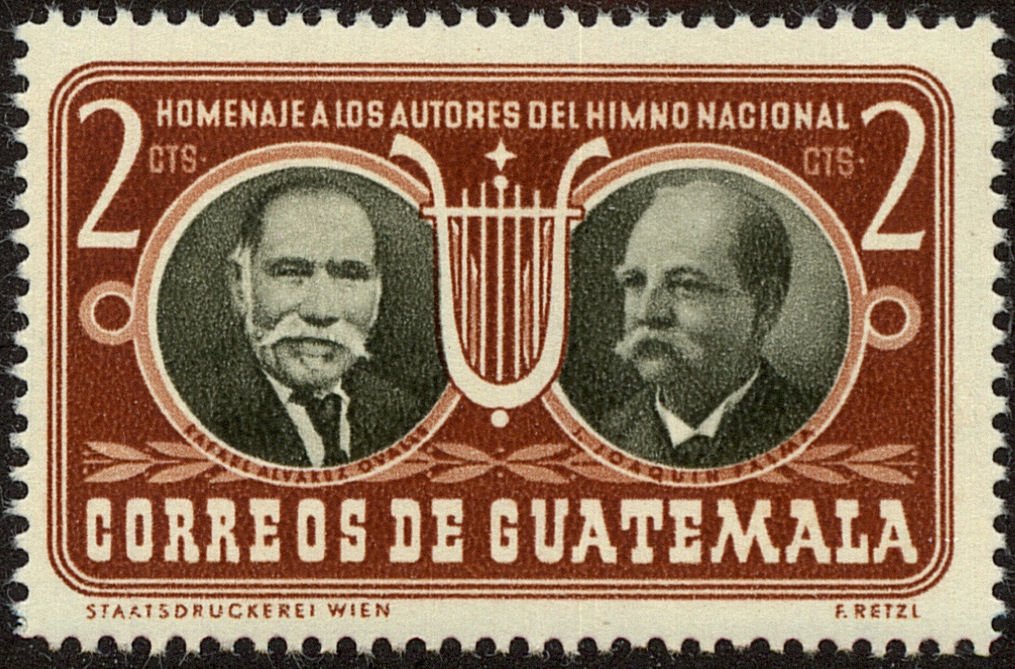 Visibility: public Image owner: none postage 5/13/1953 2c issue=authors of the national anthem d=Ovalle & Palma unwmk Crops No visible images cropped from this one. Measurements Resolution is unknown. Source Source name: Colnect File URL: http://i.colnect.net/b/4543/341/Rafael-Alvarez-Ovalle-and-Jose-Joaquim-Palma.jpg Uploaded June 6, 2018, 12:16 am by Stan Shebs |