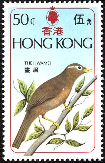 Visibility: public Image owner: none postage 10/29/1975 50c multi dt=birds (1975 Hong Kong) d=Chinese hwamei wmk=crown & CA spiral perf=14.5 Crops No visible images cropped from this one. Measurements Resolution is unknown. Source Source name: Colnect File URL: http://i.colnect.net/b/4090/780/Chinese-Hwamai-Garrulax-canorus.jpg Uploaded June 7, 2018, 3:45 pm by Stan Shebs |