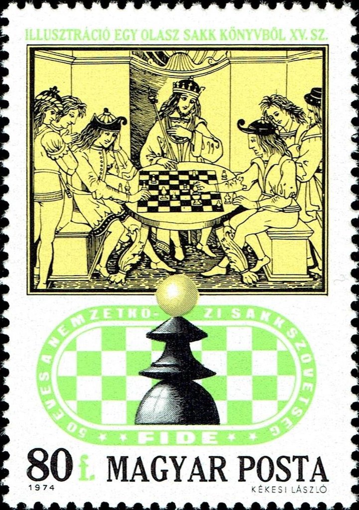 Visibility: public Image owner: none postage 6/6/1974 80f multi issue=Chess Federation 50th d=Royal Chess Party 15th Century Italian Chess Book unwmk perf=12 Crops No visible images cropped from this one. Measurements Resolution is unknown. Source Source name: Colnect File URL: http://i.colnect.net/b/4502/474/Royal-Chess-Party-15th-Century-Italian-Chess-Book.jpg Uploaded June 7, 2018, 4:34 pm by Stan Shebs |