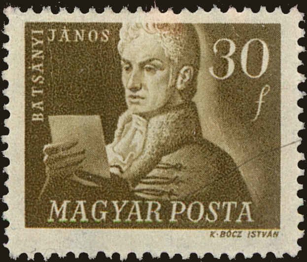 Visibility: public Image owner: none postage 3/15/1947 30f ol issue=freedom leaders d=János Batsányi wmk=cross & wreath & crown perf=15 Crops No visible images cropped from this one. Measurements Resolution is unknown. Source Source name: Colnect File URL: http://i.colnect.net/b/4404/989/János-Batsányi-1763-1845-poet.jpg Uploaded June 7, 2018, 7:50 pm by Stan Shebs |