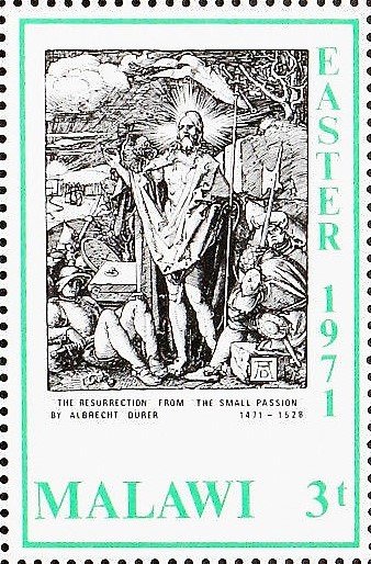 Visibility: public Image owner: none postage 4/7/1971 3t multi issue=Easter 1971 wmk=mult cockerel Crops No visible images cropped from this one. Measurements Resolution is unknown. Source Source name: Colnect File URL: http://i.colnect.net/b/4971/916/The-Resurrection-from--The-Small-Passion--by-Albrecht-Durer.jpg Uploaded June 20, 2018, 3:56 pm by Stan Shebs |