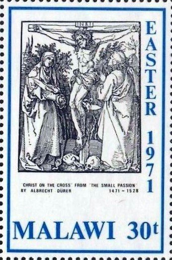 Visibility: public Image owner: none postage 4/7/1971 30t blk&bl issue=Easter 1971 wmk=mult cockerel Crops No visible images cropped from this one. Measurements Resolution is unknown. Source Source name: Colnect File URL: http://i.colnect.net/b/4972/454/Christ-on-the-Cross-from--The-Small-Passion--by-A-Dürer.jpg Uploaded June 20, 2018, 3:56 pm by Stan Shebs |