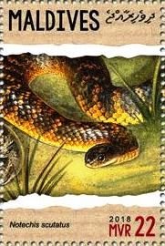 Visibility: public Image owner: none postage 3/15/2018 22r. multi issue=Snakes 2018 dt=snakes (2018) d=Notechis scutatus unwmk Crops No visible images cropped from this one. Measurements Resolution is unknown. Source Source name: Colnect File URL: http://i.colnect.net/b/4940/133/Notechis-scutatus.jpg Uploaded June 20, 2018, 6:13 pm by Stan Shebs |