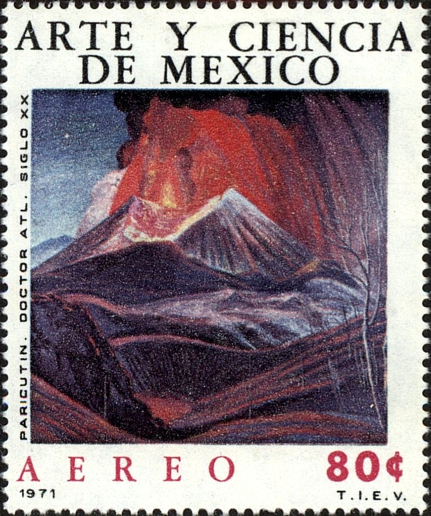 Visibility: public Image owner: none airmail 4/24/1971 80c multi issue=Mexican Arts and Sciences 1971 dt=paintings (1971 Mexico) d="El Paricutin" - G. Murillo wmk=MEX & eagle perf=14 Crops No visible images cropped from this one. Measurements Resolution is unknown. Source Source name: Colnect File URL: http://i.colnect.net/b/4185/853/Volcán-Paricutín.jpg Uploaded June 21, 2018, 8:16 pm by Stan Shebs |