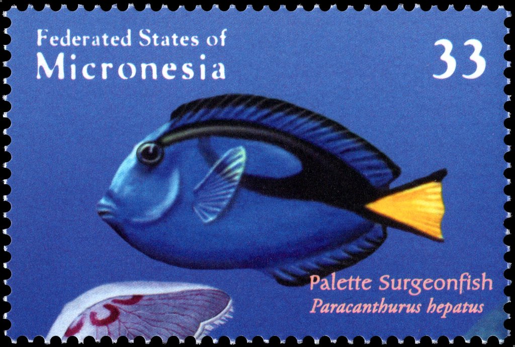 Visibility: public Image owner: none postage 12/1/2000 33c multi issue=The Coral Reef dt=Coral Reef fishes (2000) d=Paracanthurus hepatus (2000 Micronesia) unwmk perf=14 Crops No visible images cropped from this one. Measurements Resolution is unknown. Source Source name: Colnect File URL: http://i.colnect.net/b/4657/427/Palette-Surgeonfish---Paracanthurus-hepatus.jpg Uploaded June 22, 2018, 12:18 am by Stan Shebs |