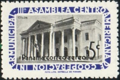 Visibility: public Image owner: none postage 2/28/1962 5c ultra&blk issue=3rd Central American Inter-Municipal Co-operation Assembly d=Colon City Hall wmk=star & RP multiple Crops No visible images cropped from this one. Measurements Resolution is unknown. Source Source name: Colnect File URL: http://i.colnect.net/b/4724/875/Colon-City-Hall.jpg Uploaded June 30, 2018, 4:20 am by Stan Shebs |