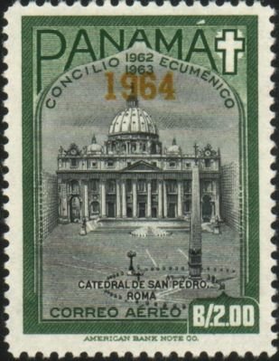 Visibility: public Image owner: none airmail 9/28/1964 2b grn&blk issue=21st Ecumenical Council b unwmk Crops No visible images cropped from this one. Measurements Resolution is unknown. Source Source name: Colnect File URL: http://i.colnect.net/b/4731/943/St-Peter’s-Cathedral-Rome---overprint-1964.jpg Uploaded June 30, 2018, 4:29 am by Stan Shebs |