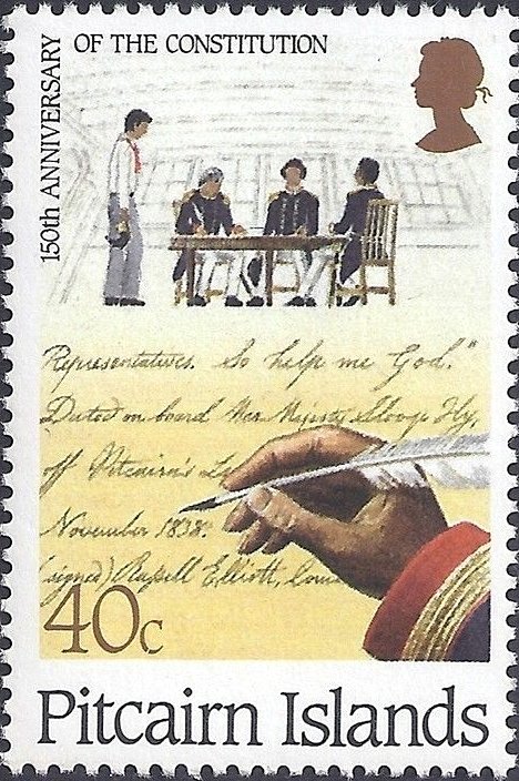 Visibility: public Image owner: none postage 11/30/1988 40c multi issue=150th Anniversary of the Pitcairn Island Constitution d=Signing of the constitution andtext wmk=St Edwards crown & CA perf=14 Crops No visible images cropped from this one. Measurements Resolution is unknown. Source Source name: Colnect File URL: http://i.colnect.net/b/5057/747/Signing-of-the-constitution-1838-and-text.jpg Uploaded July 2, 2018, 5:19 pm by Stan Shebs |