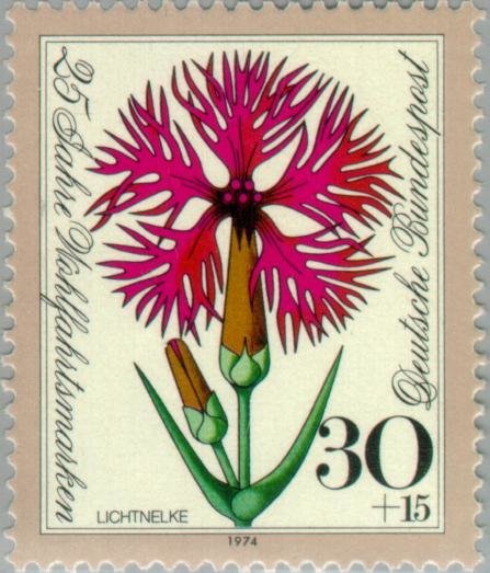Visibility: public Image owner: none semipostal 30+15(pf) brn&multi issue=welfare 25th dt=flowers (1974 Germany) d=Dianthus superbus (1974) unwmk Crops No visible images cropped from this one. Measurements Resolution is unknown. Source Source name: Colnect File URL: http://i.colnect.net/b/152/940/Flowers.jpg Uploaded August 26, 2014, 6:59 pm by Stan Shebs |