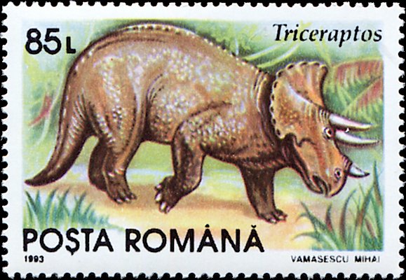 Visibility: public Image owner: none postage 7/30/1993 85L multi dt=prehistoric animals (1993 Romania) d=Triceratops (1993) unwmk perf=13.25 Crops No visible images cropped from this one. Measurements Resolution is unknown. Source Source name: Colnect File URL: http://i.colnect.net/b/4905/105/Triceratops.jpg Uploaded July 3, 2018, 6:09 pm by Stan Shebs |