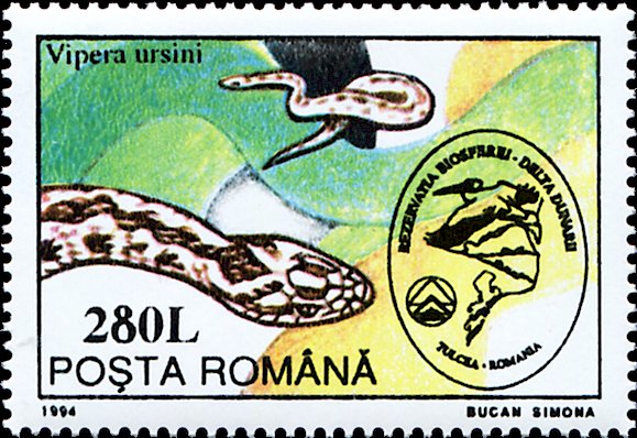 Visibility: public Image owner: none postage 8/31/1994 280L multi issue=Protection of the Danube Delta d=Vipera ursinii (a) unwmk perf=13.25 Crops No visible images cropped from this one. Measurements Resolution is unknown. Source Source name: Colnect File URL: http://i.colnect.net/b/4931/142/Meadow-Viper-Vipera-ursini.jpg Uploaded July 3, 2018, 6:14 pm by Stan Shebs |