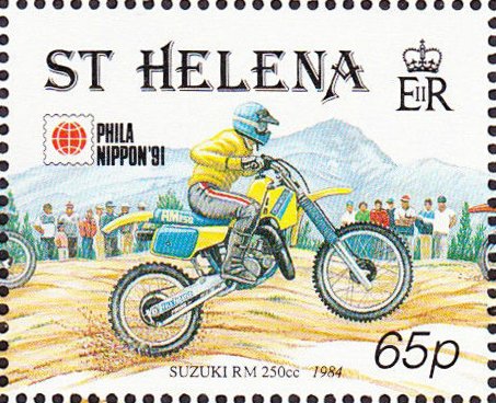 Visibility: public Image owner: none postage 11/16/1991 65p multi issue=PHILANIPPON '91 dt=motorcycles (1991) d=Suzuki RM wmk=mult crown & script CA Crops No visible images cropped from this one. Measurements Resolution is unknown. Source Source name: Colnect File URL: http://i.colnect.net/b/4718/385/Suzuki-RM-250cc-1984.jpg Uploaded July 6, 2018, 4:54 pm by Stan Shebs |