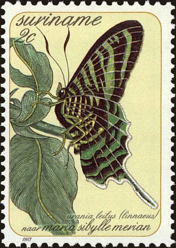 Visibility: public Image owner: none postage 9/14/1983 2c multi dt=butterfly drawings by Maria Sibylle Merian d=Urania leilus (1983) unwmk perf=12.75x14 Crops No visible images cropped from this one. Measurements Resolution is unknown. Source Source name: Colnect File URL: http://i.colnect.net/b/4994/844/Green-banded-Urania-Urania-leilus.jpg Uploaded July 13, 2018, 2:33 am by Stan Shebs |
