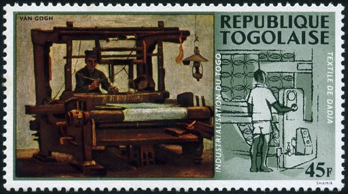 Visibility: public Image owner: none postage 1/1968 45fr multi dt=industry & paintings d=The Weaver at the Loom by Vincent Van Gogh & Textile Plant unwmk perf=14 Crops No visible images cropped from this one. Measurements Resolution is unknown. Source Source name: Colnect File URL: http://i.colnect.net/b/4502/166/The-Weaver-at-the-Loom-by-Vincent-Van-Gogh-and-Textile-Plant.jpg Uploaded July 17, 2018, 4:03 pm by Stan Shebs |