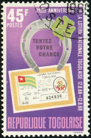 Visibility: public Image owner: none postage 10/5/1968 45fr multi issue=National Lottery 2nd unwmk perf=14 Crops No visible images cropped from this one. Measurements Resolution is unknown. Source Source name: Colnect File URL: http://i.colnect.net/b/4502/181/Lottery-ticket-horseshoe---4-leaf-clover.jpg Uploaded July 17, 2018, 4:03 pm by Stan Shebs |