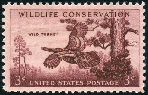 Visibility: public Image owner: none postage 5/5/1956 3c redbrn issue=Wildlife Conservation d=wild turkey (1956) unwmk perf=11x10.5 Crops No visible images cropped from this one. Measurements Resolution is unknown. Source Source name: Colnect File URL: http://i.colnect.net/b/4840/414/Wild-Turkey-Meleagris-gallopavo.jpg Uploaded July 23, 2018, 4:51 pm by Stan Shebs |