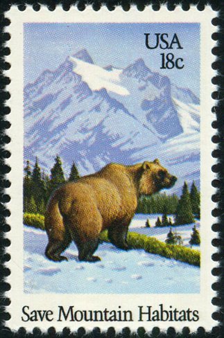 Visibility: public Image owner: none postage 6/26/1981 18c multi issue=wildlife habitat preservation d=mountain unwmk perf=11 Crops No visible images cropped from this one. Measurements Resolution is unknown. Source Source name: Colnect File URL: http://i.colnect.net/b/4845/885/Grizzly-Bear-Ursus-arctos-horribilis.jpg Uploaded July 23, 2018, 5:08 pm by Stan Shebs |