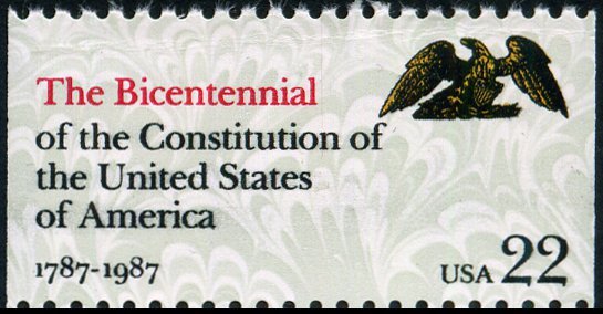 Visibility: public Image owner: none postage 8/28/1987 22c multi issue=Constitution drafting 200th d=The Bicentennial... unwmk perf=10h Crops No visible images cropped from this one. Measurements Resolution is unknown. Source Source name: Colnect File URL: http://i.colnect.net/b/5091/145/The-Bicentennial-of-the-Constitution-of-the-United-States.jpg Uploaded July 23, 2018, 6:09 pm by Stan Shebs |