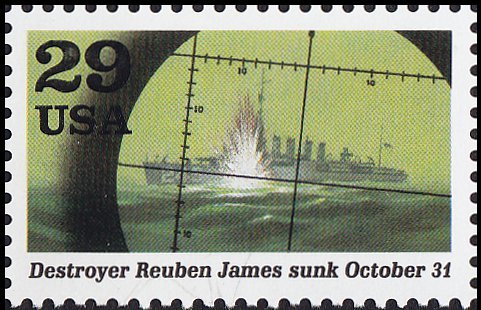 Visibility: public Image owner: none postage 9/3/1991 29c multi issue=1941: A World at War dt=World War II (1991) d=sinking of Reuben James unwmk perf=11 Crops No visible images cropped from this one. Measurements Resolution is unknown. Source Source name: Colnect File URL: http://i.colnect.net/b/5099/430/Sinking-of-Destroyer-Reuben-James-Oct-31.jpg Uploaded July 23, 2018, 6:55 pm by Stan Shebs |