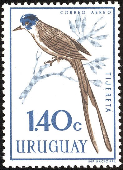 Visibility: public Image owner: none airmail 12/15/1962 $1.40 multi issue=Birds 1962 dt=birds (1962 Uruguay) d=Fork-tailed flycatcher Tyrannus savana wmk=large sun & ROU Crops No visible images cropped from this one. Measurements Resolution is unknown. Source Source name: Colnect File URL: http://i.colnect.net/b/4233/198/Fork-tailed-Flycatcher-Tyrannus-savana.jpg Uploaded July 25, 2018, 1:52 am by Stan Shebs |