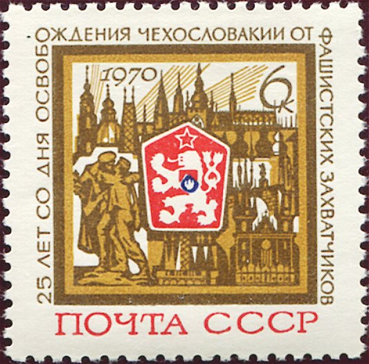 Visibility: public Image owner: none postage 5/8/1970 6k multi issue=25th Anniversary of Czech Liberation d=Czech arms & Prague view unwmk perf=12 Crops No visible images cropped from this one. Measurements Resolution is unknown. Source Source name: Colnect File URL: http://i.colnect.net/b/4593/016/Czech-Arms-Prague-City-Views.jpg Uploaded July 25, 2018, 5:51 pm by Stan Shebs |