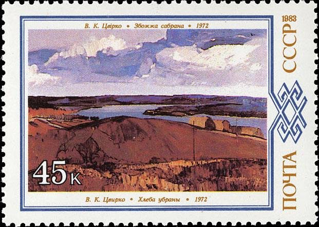 Visibility: public Image owner: none postage 9/20/1983 45k multi dt=Byelorussian Paintings d=painting by V. K. Tsvirko unwmk Crops No visible images cropped from this one. Measurements Resolution is unknown. Source Source name: Colnect File URL: http://i.colnect.net/b/4877/052/Harvest--by--VK-Tsvirko--1972.jpg Uploaded July 25, 2018, 7:05 pm by Stan Shebs |