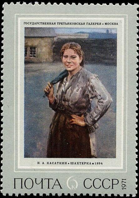Visibility: public Image owner: none postage 10/14/1971 6k multi dt=Russian paintings d=Woman Miner 1894 N A Kasatkin 1859-1930 unwmk perf=12 Crops No visible images cropped from this one. Measurements Resolution is unknown. Source Source name: Colnect File URL: http://i.colnect.net/b/4861/569/-Woman-Miner--1894-N-A-Kasatkin-1859-1930.jpg Uploaded July 25, 2018, 9:28 pm by Stan Shebs |
