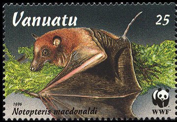 Visibility: public Image owner: none postage 4/3/1996 25vt multi issue=flying foxes dt=flying foxes (1996) d=Pteropus anetianus unwmk perf=14 Crops No visible images cropped from this one. Measurements Resolution is unknown. Source Source name: Colnect File URL: http://i.colnect.net/b/4974/357/Long-tailed-Fruit-Bat-Notopteris-macdonaldi.jpg Uploaded July 26, 2018, 12:26 pm by Stan Shebs |