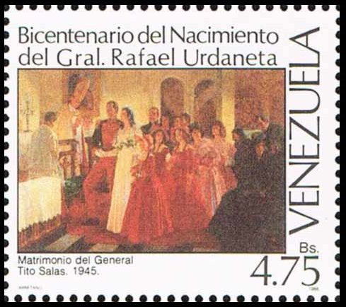 Visibility: public Image owner: none postage 7/1/1988 4.75b multi issue=200th Anniversary of the Birth of General Rafael Urdaneta d="Wedding of the General" - Tito Salas unwmk perf=12 Crops No visible images cropped from this one. Measurements Resolution is unknown. Source Source name: Colnect File URL: http://i.colnect.net/b/4706/931/General-s-wedding-by-Tito-Salas.jpg Uploaded July 26, 2018, 5:58 pm by Stan Shebs |