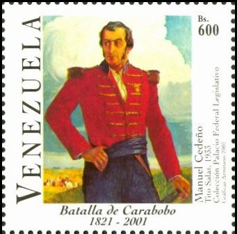 Visibility: public Image owner: none postage 6/22/2001 600b multi issue=180th Anniversary of Battle of Carabobo d="Manuel Cedeno" - Tito Salas unwmk perf=12 Crops No visible images cropped from this one. Measurements Resolution is unknown. Source Source name: Colnect File URL: http://i.colnect.net/b/5033/817/Manuel-Cedeño.jpg Uploaded July 26, 2018, 7:54 pm by Stan Shebs |
