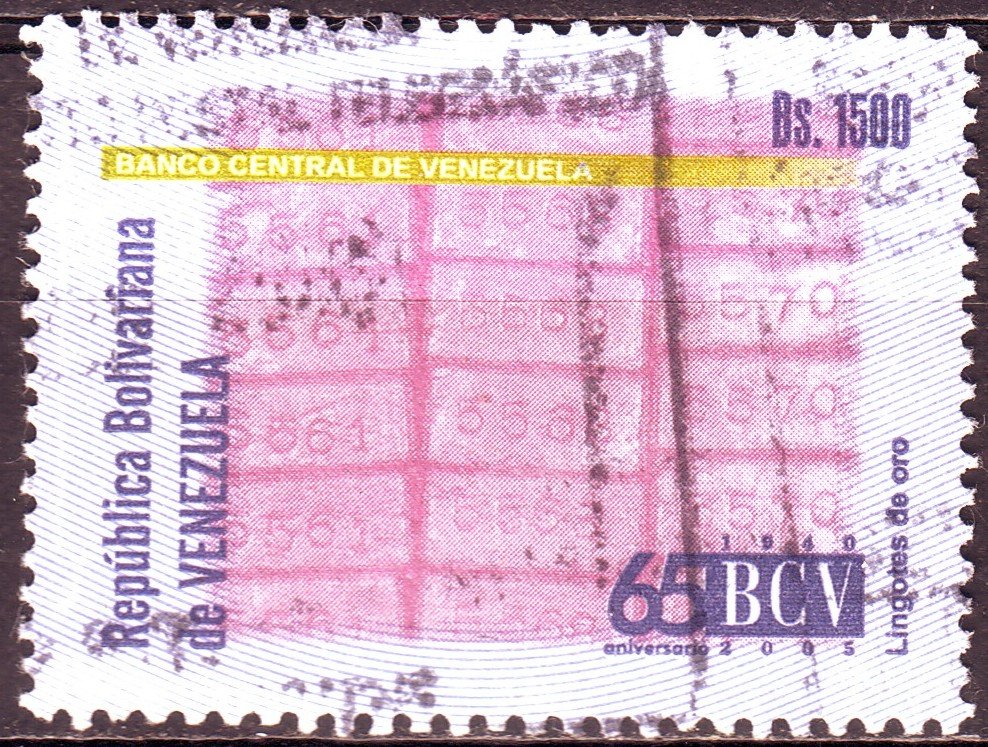 Visibility: public Image owner: none postage 10/20/2005 1500b multi issue=65th Anniversary of the Venezuelan Central Bank unwmk Crops No visible images cropped from this one. Measurements Resolution is unknown. Source Source name: Colnect File URL: http://i.colnect.net/b/5035/852/Gold-bars.jpg Uploaded July 26, 2018, 8:06 pm by Stan Shebs |