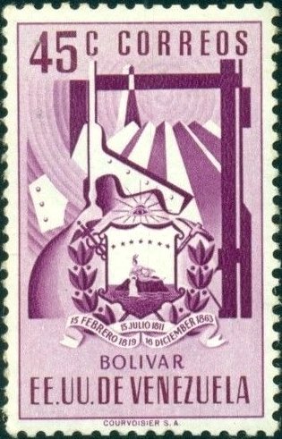 Visibility: public Image owner: none postage 3/24/1952 45c pur issue=Bolivar state d=Bolivar state seal unwmk perf=11.75 Crops No visible images cropped from this one. Measurements Resolution is unknown. Source Source name: Colnect File URL: http://i.colnect.net/b/4453/140/Coat-of-arms-of-Bolívar-metal-ore-mining.jpg Uploaded July 27, 2018, 1:00 am by Stan Shebs |