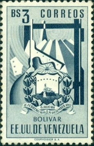Visibility: public Image owner: none postage 3/24/1952 3b ind issue=Bolivar state d=Bolivar state seal unwmk perf=11.75 Crops No visible images cropped from this one. Measurements Resolution is unknown. Source Source name: Colnect File URL: http://i.colnect.net/b/4453/141/Coat-of-arms-of-Bolívar-metal-ore-mining.jpg Uploaded July 27, 2018, 1:00 am by Stan Shebs |