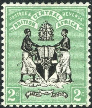 Visibility: public Image owner: none postage 2/1896 2p grn&blk issue=1896 d=arms of British Central Africa (1895) wmk=crown & CA perf=14 Crops No visible images cropped from this one. Measurements Resolution is unknown. Source Source name: Colnect File URL: http://i.colnect.net/b/4980/257/Coat-of-Arms-of-BCA-coloured-background.jpg Uploaded August 2, 2018, 3:53 pm by Stan Shebs |