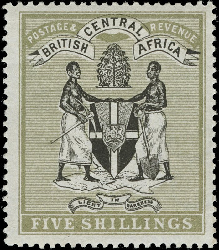 Visibility: public Image owner: none postage 2/1896 5sh issue=1896 d=arms of British Central Africa larger (1895) wmk=crown & CC perf=14 Crops No visible images cropped from this one. Measurements Resolution is unknown. Source Source name: Colnect File URL: http://i.colnect.net/b/4980/651/Coat-of-Arms-of-BCA-coloured-background.jpg Uploaded August 2, 2018, 3:53 pm by Stan Shebs |