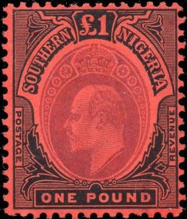 Visibility: public Image owner: none postage 1lb blk&redpur pc=orgred issue=1907 d=King Edward VII (1903 Southern Nigeria) wmk=mult crown & CA paper=chalky Crops No visible images cropped from this one. Measurements Resolution is unknown. Source Source name: Colnect File URL: http://i.colnect.net/b/5036/918/King-Edward-VII.jpg Uploaded August 2, 2018, 8:55 pm by Stan Shebs |